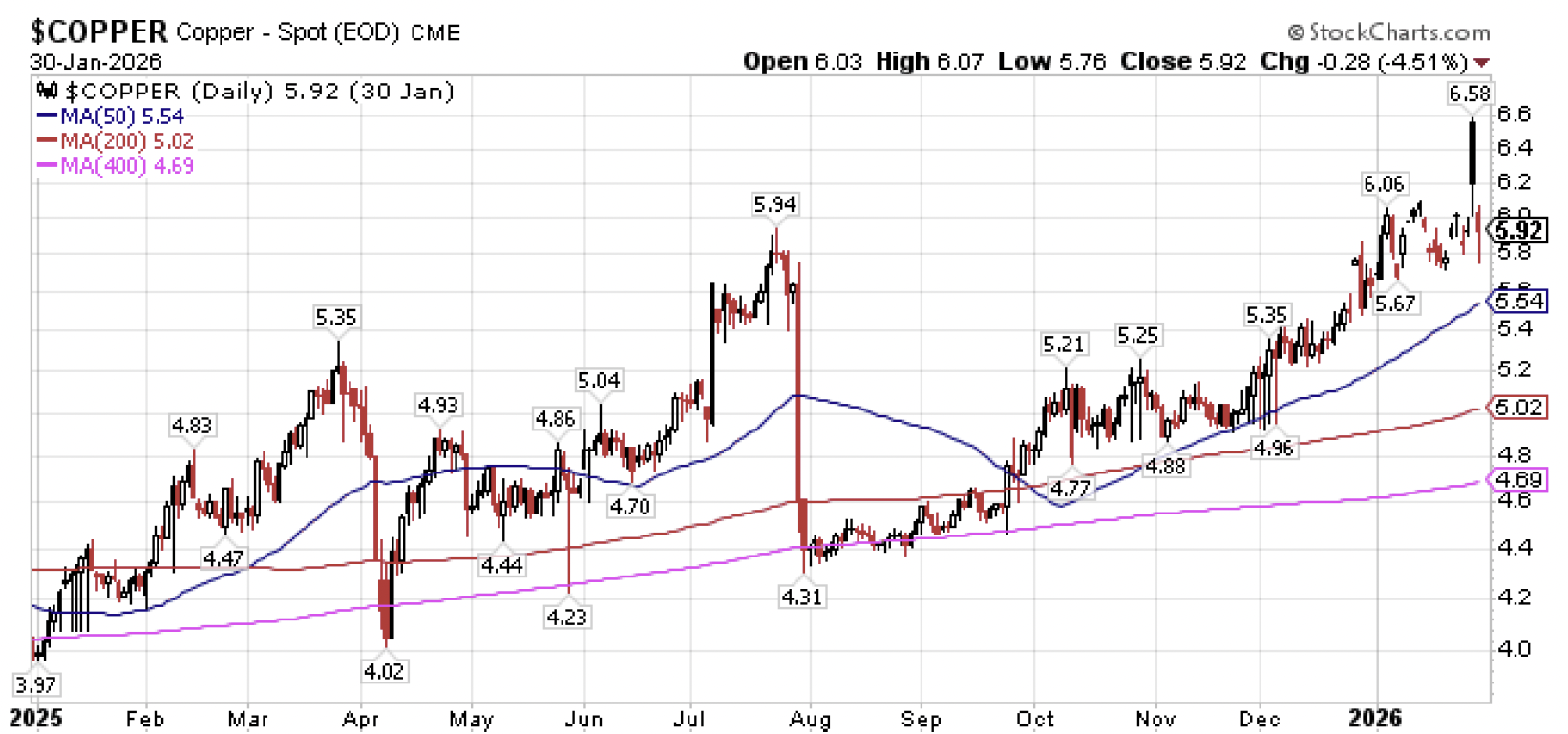 But the Olympic podium is not complete without bronze. Fun fact, bronze is primarily an alloy of copper and tin, with copper typically making up around 88%-95% of traditional bronze. And in markets, copper fills a similar role to bronze. It rarely gets the headlines, but it often carries the greatest weight.