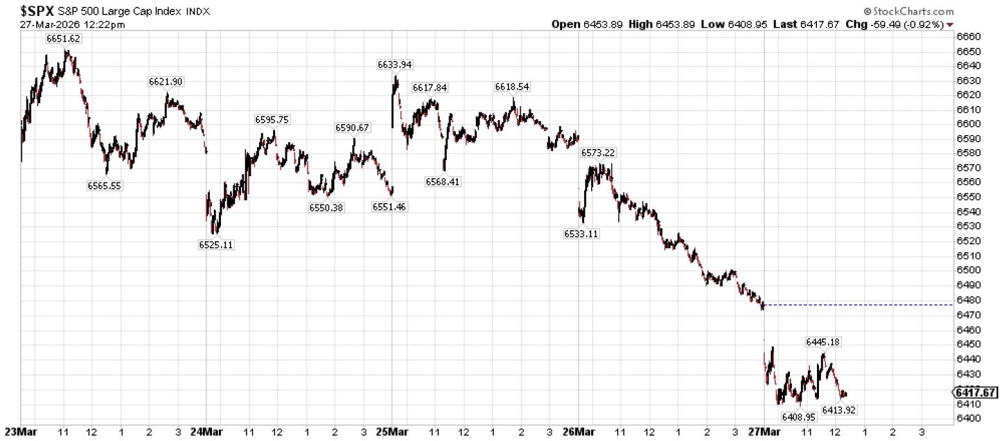 One final bonus point of reassurance – something in the yellow if you will. The price of gold has also been getting hammered along with stocks since the start of the Iran conflict. But after fifteen days of increasingly relentless downside in gold prices, we’ve seen gold catch a bid including a nearly +4% bounce today. Short covering? Perhaps. But gold being up nearly +4% on a Friday when the S&P may be finding its footing is constructive as we head into the holiday week next week.